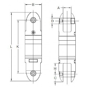 inch | tons* | A | B | C | D | H | K | L | lbs | |