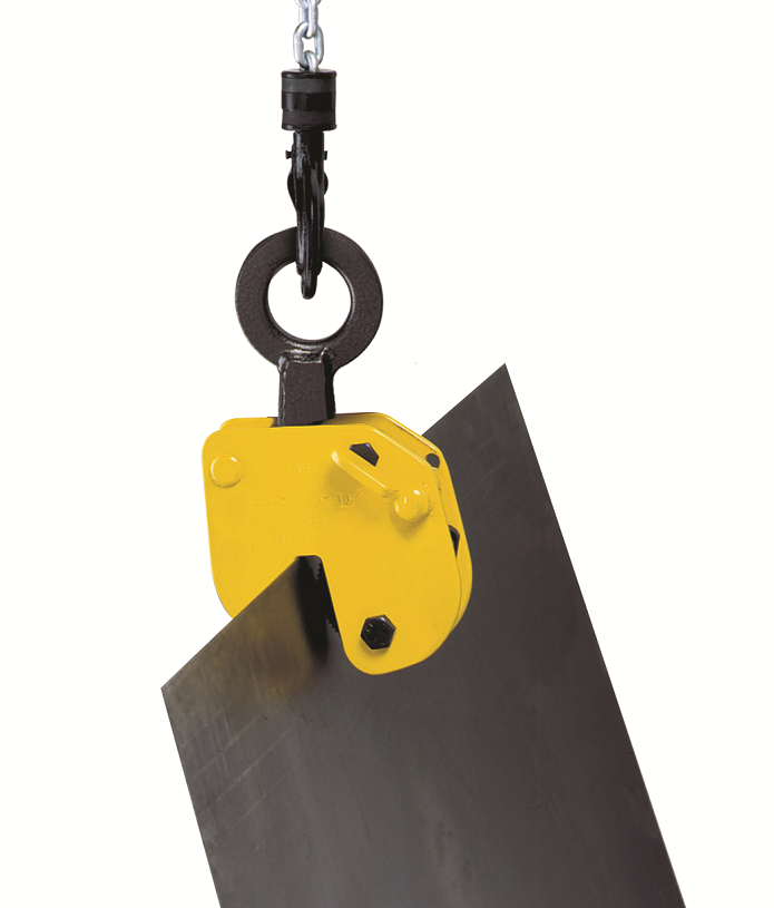The clamp is fitted with a 2:1 lever so the grip is twice that of a normal clamp. Ideal for handling thin rolled plate and plate with a higher surface hardness.