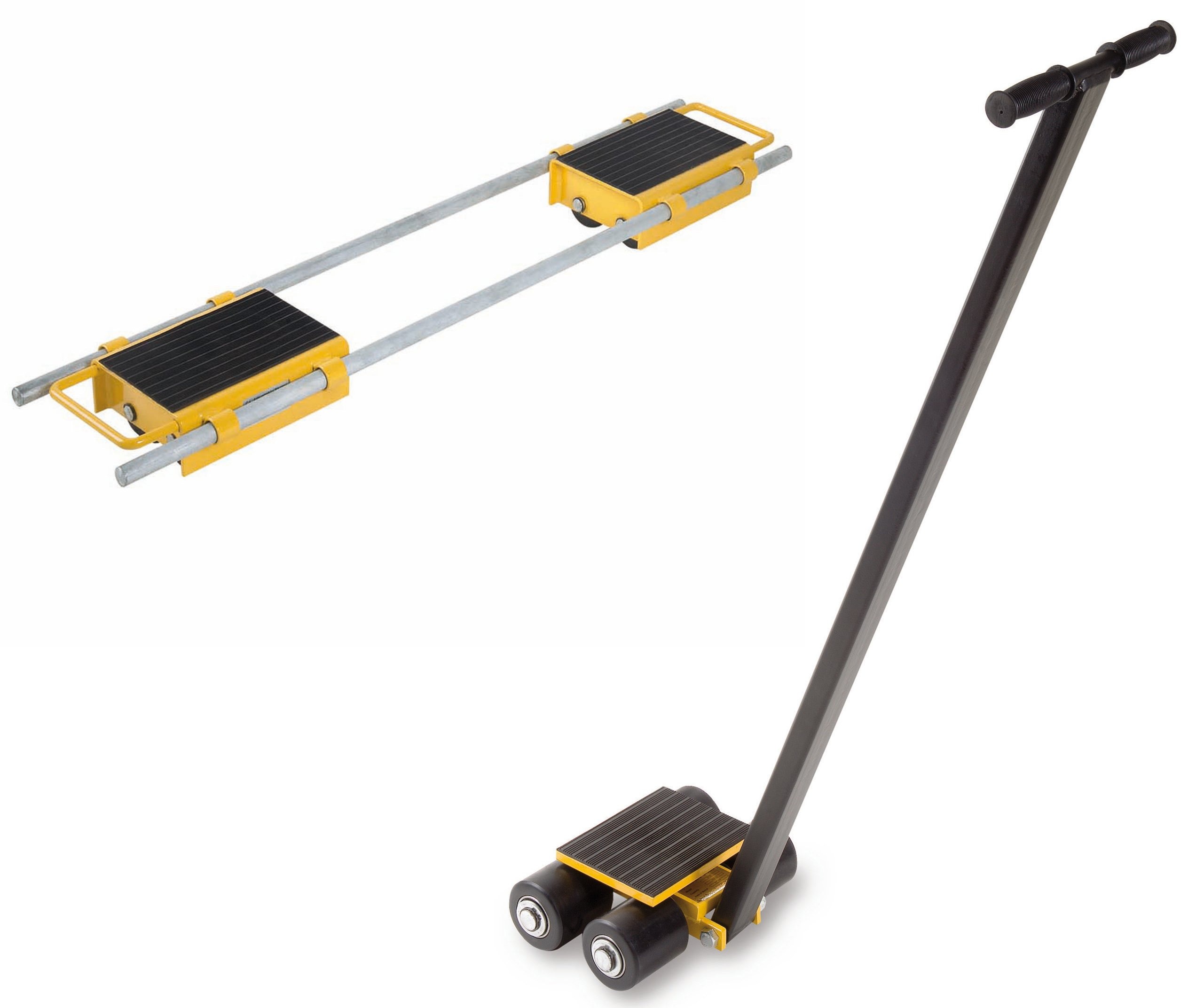 The steerable front skates (LX-6F and LX-12F) are supplied complete with a steering handle/towing bar, and the rear skates (LX-6/12R) are supplied complete with two adjustable alignment bars.