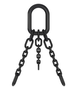The grade 80 magnet chain slings TWN 0601 are welded 3-leg chain slings with a D-link at the top and are used for a fixed connection to electro magnets. They enable the lifting and transport of magnetic material, such as steel scrap.