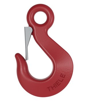The grade 80 eye sling hooks TWN 0855/1 are used to assemble chain slings. The lifting chains are assembled by using connecting links, e.g. THI-LOK®s TWN 1320. The safety latch prevents unintentional detachment from the load. The sling hooks comply with the DIN EN 1677-2.